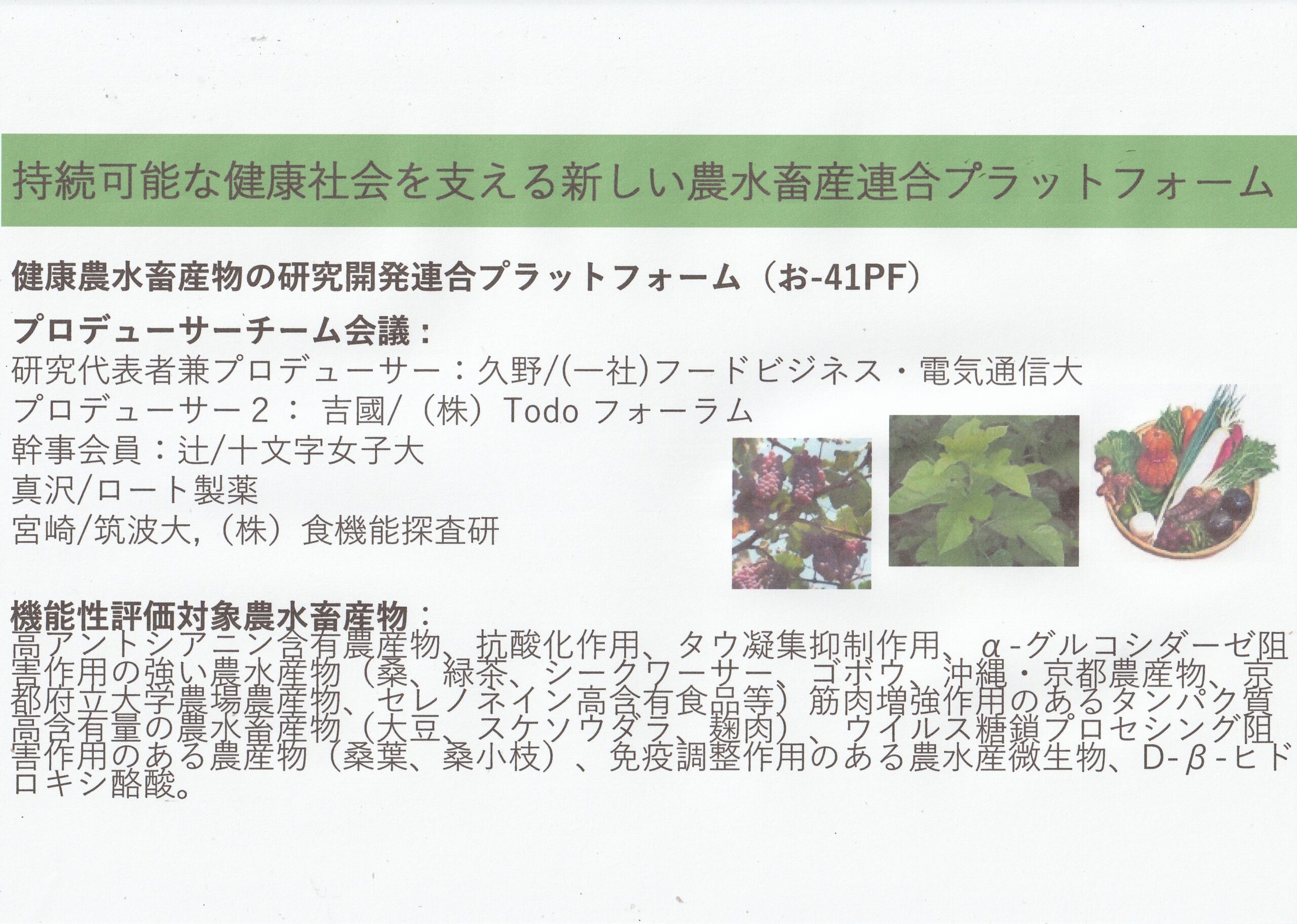 健康農水畜産物の研究開発連合プラットフォーム