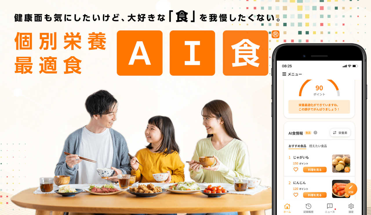 個別栄養最適食(AI食)は、あなた自身の食と体の関係性に基づいて、あなたに最適な食で健康を実現する、世界で唯一の「個人データ駆動型食ヘルスケア」です(特許取得済み)。あなた自身にだけ向き合うことで、これまでの個性を無視した平均値に基づく「規格・基準駆動型食ヘルスケア」では引き出せなかった効果が、ついに実現したのです。